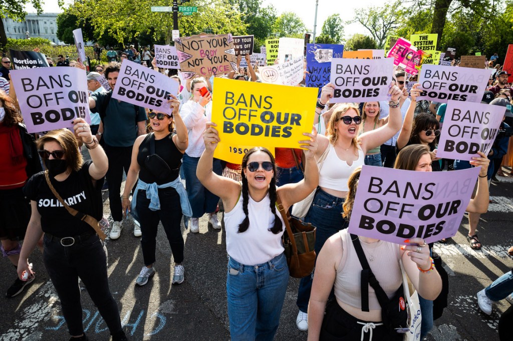 Demonstrators at the Supreme Court react to news that the Court is poised to overturn the 1973 Roe v. Wade ruling that the U.S. Constitution protects a pregnant woman’s liberty to choose to have an abortion without excessive government restriction.