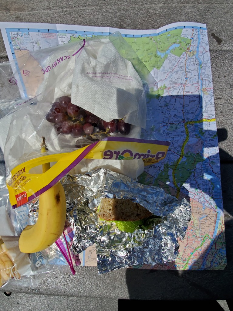 Google maps are great, but how do you contradict the GPS assistant who wants you to take the shortest route when you want to take the longer, less trafficked, and MUCH greener route through the Hudson River valley and across the Tappan Zee (“Tappan” after the Native American sub-tribe of the Delaware/ Lenape people, and “Zee,” Dutch for sea) Bridge? I fight the objecting Google bongo drums directing me south when I want to go west, and lunch at a rest stop near Washington’s headquarters outside Fishkill NY, contemplating the temporal distance between General Washington and me, texting photos of my roadside still life back to photographer friend Julie in NH.