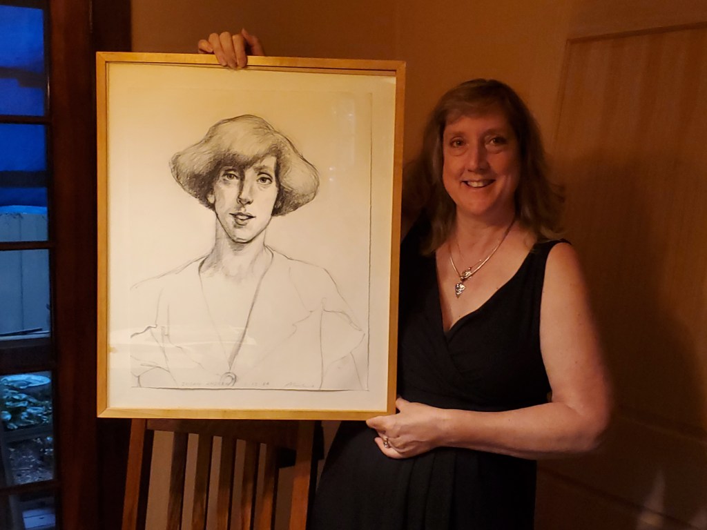 I’m eager to deliver to my step-daughter Susan her framed portrait, a fine piece done by Sigmund Abeles in the early 80’s, before the rainstorm intensifies; safely transporting this was, after all, the primary reason for my long drive south. Now, at the center point of my sojourn, that mission is accomplished!