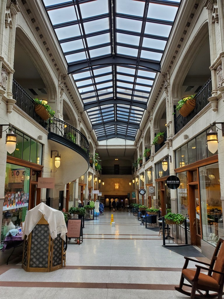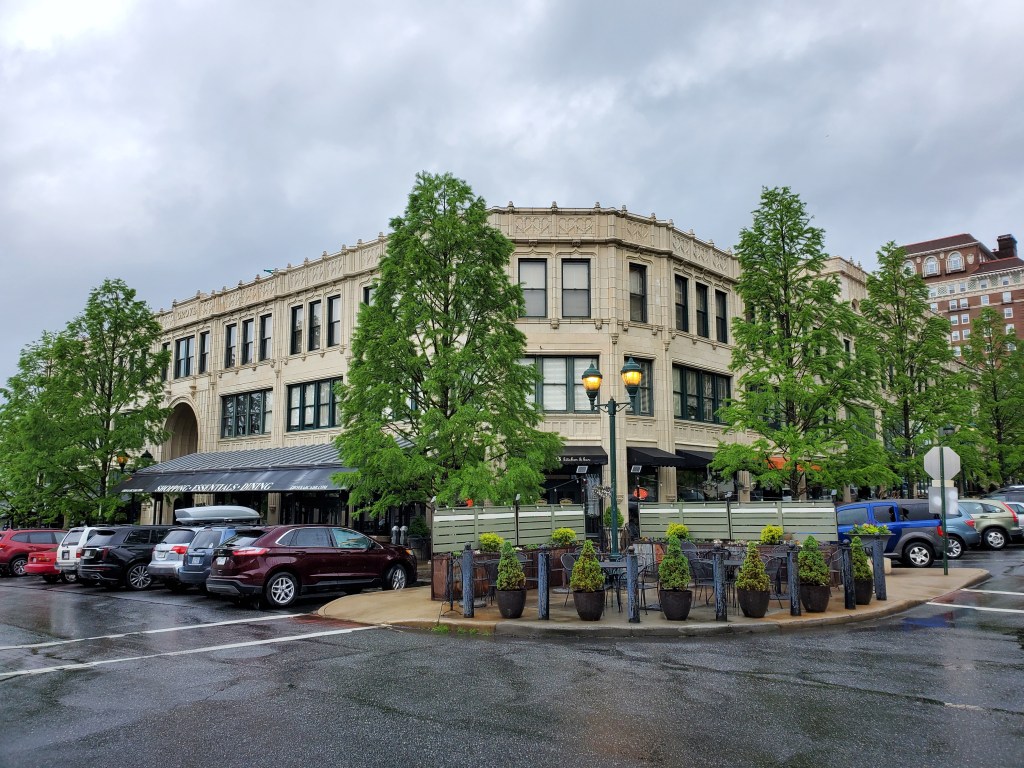 Back to the enterprising Mr. Grove. By 1907, he had turned his attention from tonic to real estate, having himself acquired 1000 acres of land and created charming residential neighborhoods in North Asheville, now on the National Register of Historic Places. In the early 20th century, sanitariums and natural beauty were both drawing people to Asheville, but with Grove’s construction of the Grove Park Inn, completed in 1913, tourism won out, inspiring Grove’s Arcade downtown, which after many varied iterations was revitalized and reopened in 2002. On a rainy Monday, it is a good shelter.