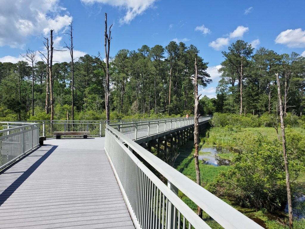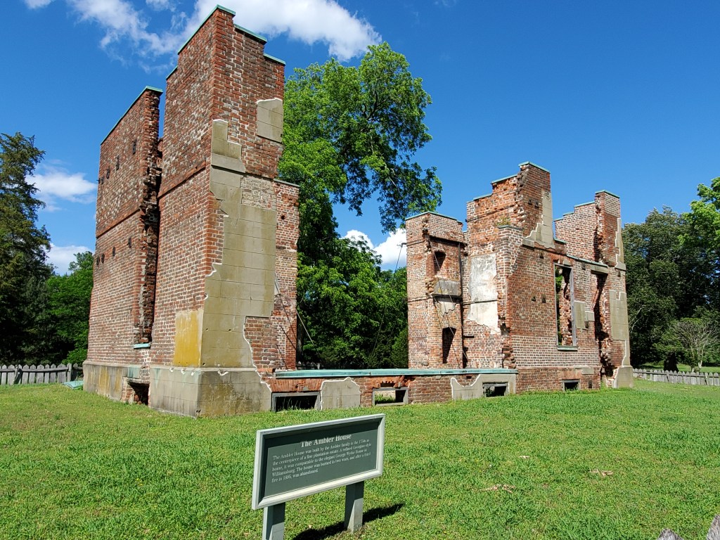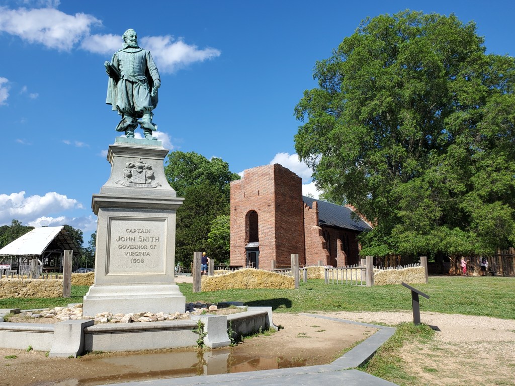 By the time we part with Alex at the Church, I’m hungry, so we share a sandwich at the CW Cheese Shop before driving on the Colonial Parkway to the Jamestown Rediscovery archaeological dig, baking in the bright sun next to the James River. Once arrived, you approach by foot on a bridge crossing a swamp best viewed from above, the first evocation of the terrible trials that befell those Virginia Company settlers who landed on Jamestown Island in May 1607 to establish the first North American English colony 60 miles from the mouth of the Chesapeake Bay. First, the malaria-infested swamp water laced with arsenic (!), then the starving time, cannibalism, and sporadic attacks from the native Powhatan tribe. We walk past the Ambler Mansion (c. 1750) ruins, thrice burned, first in the Revolutionary War, again in the Civil War, and finally abandoned after a third fire in 1895, further testament to hard times and a veneer of civilization as thin as the remaining stone facing on the brick foundation.