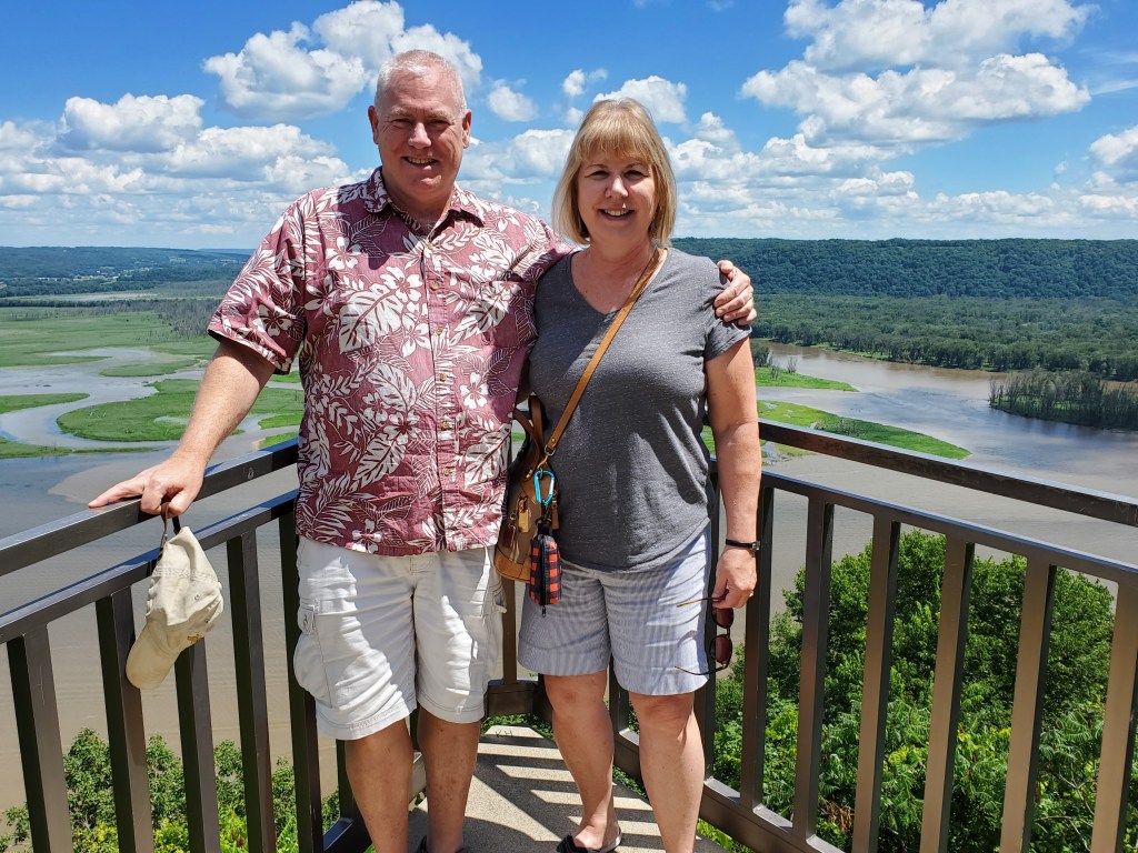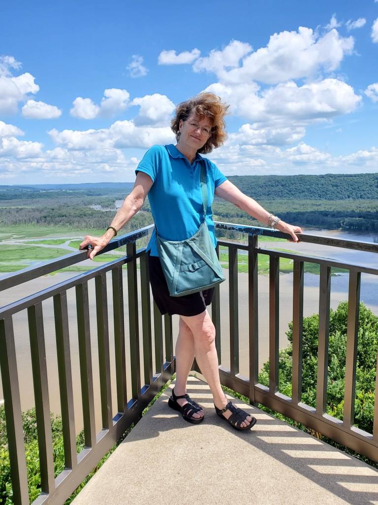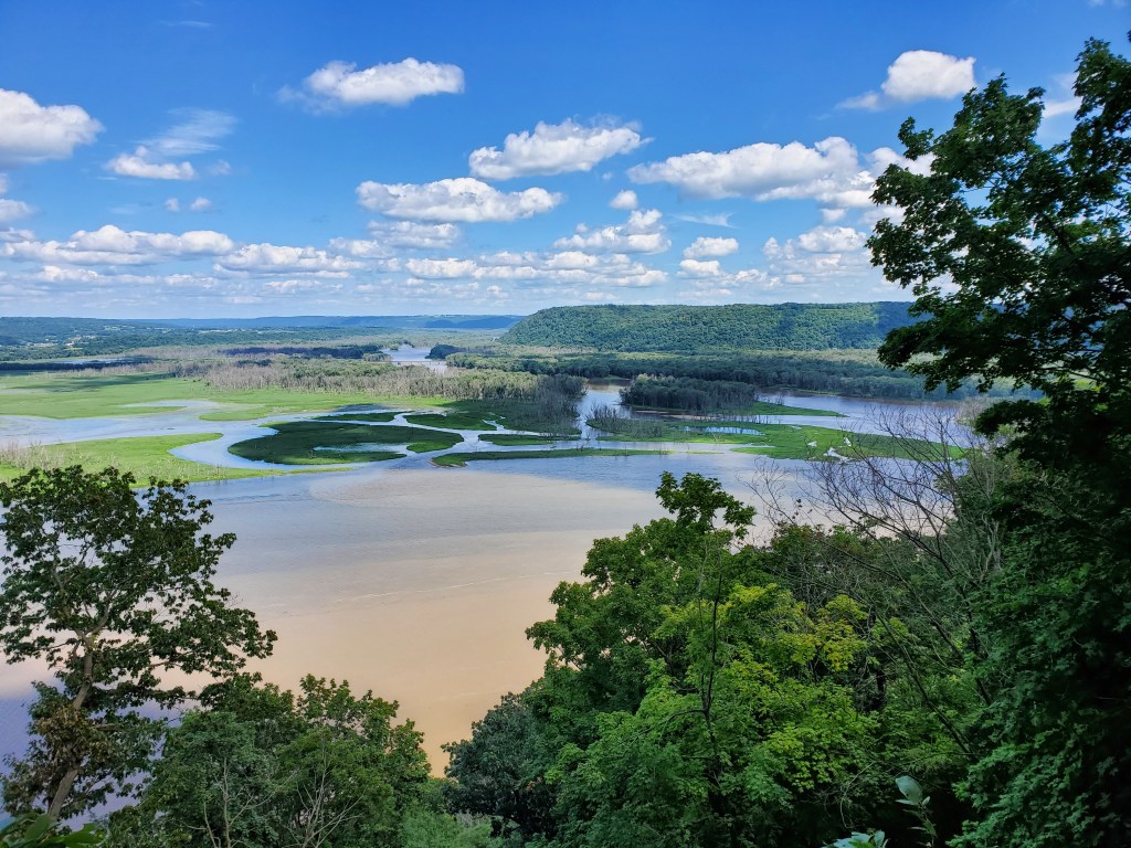 Pikes Peak State Park features a 500-foot bluff (elevation 1130 feet) overlooking the upper Mississippi at the confluence of the Wisconsin River, providing a magnificent view, as stunning today as it must have been to the first Europeans to encounter it in 1673, French explorers Father Jacques Marquette and mapmaker Louis Jolliet, who journeyed down the Wisconsin River in two bark canoes to meet the mighty Mississippi. Once again, Nick Carraway’s musing at the end of The Great Gatsby comes to mind: they must have held their breath in the presence of this continent, “a fresh green breast of the new world.”