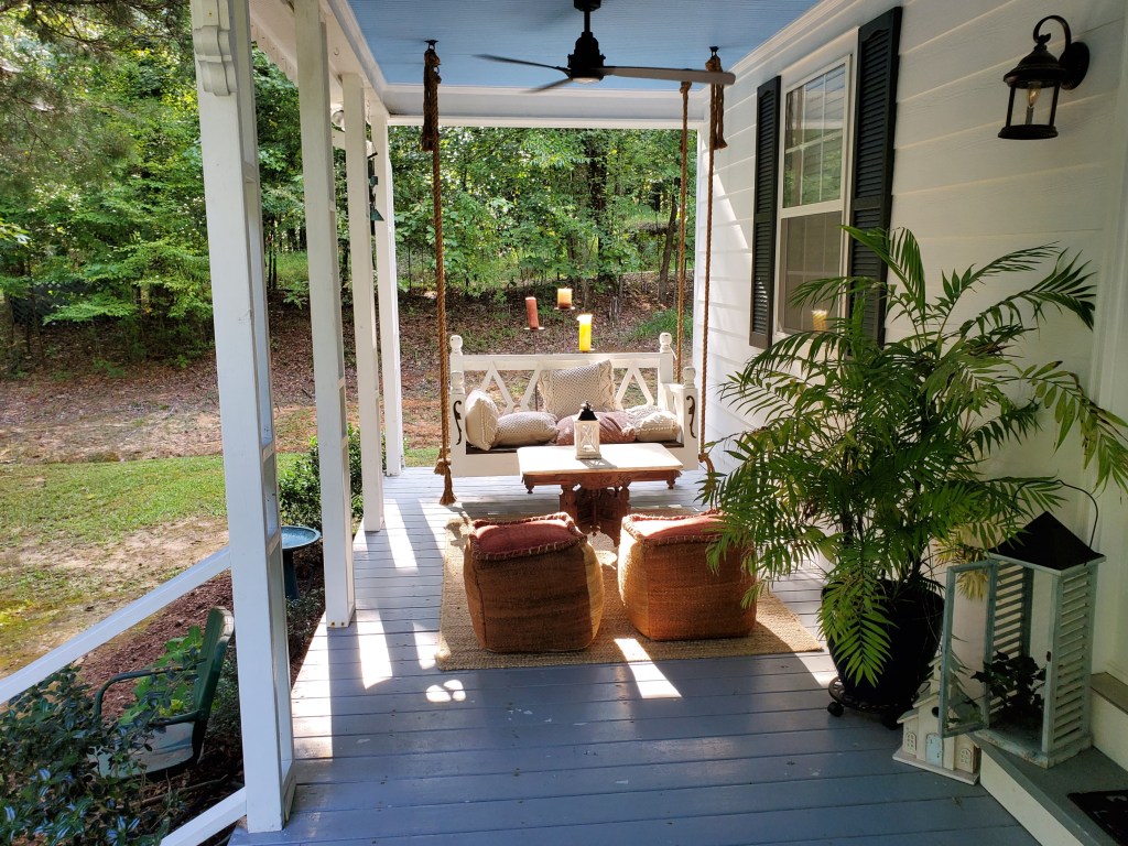 Our host, Oxford native Debra, beautifully organized all the logistics, including providing limo service to and from Memphis, the closest airport for the two of us who had to fly in, and arranging with her little sister Cindy–a warm, ebullient, strong, hilarious steel magnolia if ever there was one–for our use of the charming cottage she keeps as a rental property on Pea Ridge Farm, family land close to the handsome retrofitted cabin where Debra lives.