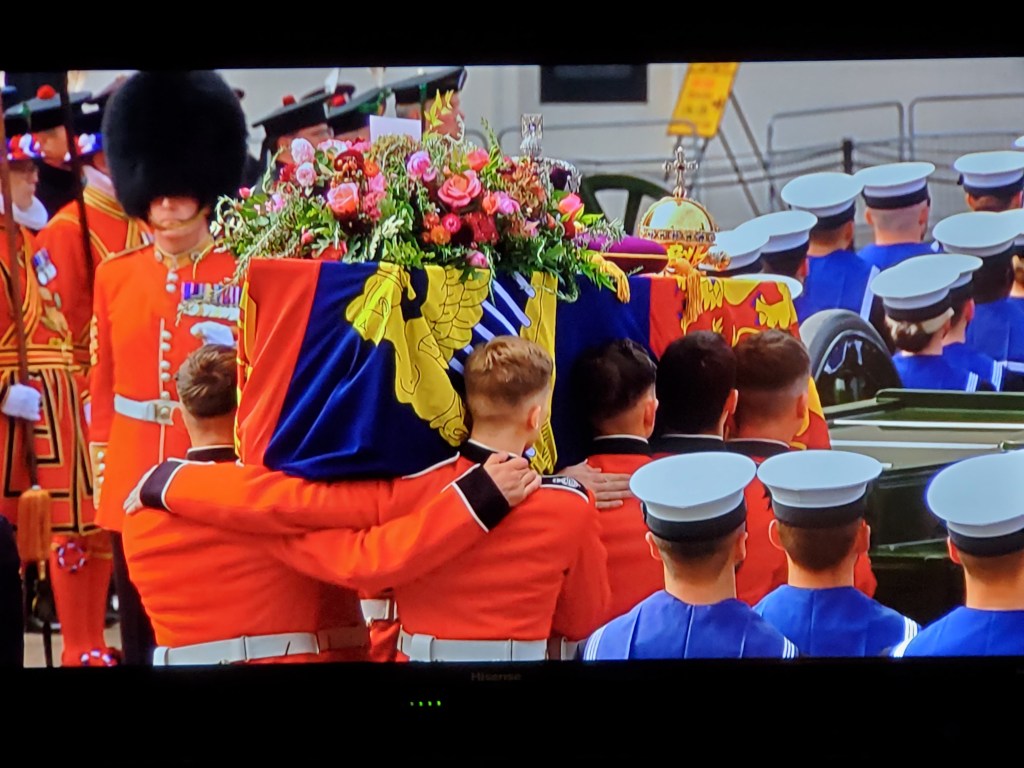 Our last morning together, before an Oxford breakfast at First Watch with two other New Orleans friends who happened to be visiting in nearby Water Valley, a quaint and artsy/funky town 25 miles from Oxford, we were absorbed by Queen Elizabeth’s funeral cortege broadcast on the big digital screen at Belle Glen. We were, after all, all English majors, lifelong students and scholars of early English lit, all acknowledging that no one does pageantry as well as the Brits–and all, I think, feeling the end of an era as we prepared to go our separate ways once more.