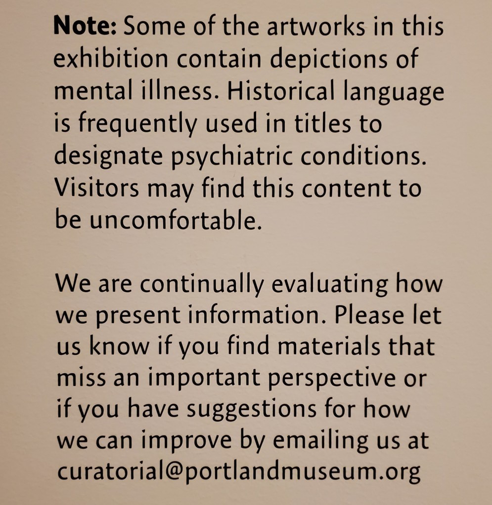Perhaps a less successful accommodation: the trigger warning message the PMA thought necessary to post to protect patrons’ delicate sensibilities.