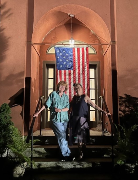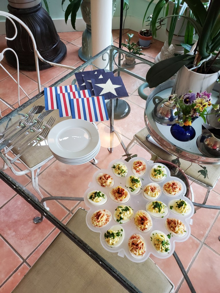 My own on-the-Fourth party was also a reunion of art department colleagues, plus a couple of my newer acquaintance. The morning’s rain stopped and the sun broke through just as the first guest arrived, allowing for appetizers on the first floor west-facing deck while I grilled burgers on the ground floor driveway to the east.