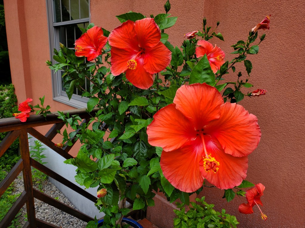 But my hibiscus, outside on the deck for the summer, is flourishing in New Hampshire weather masking as Florida.