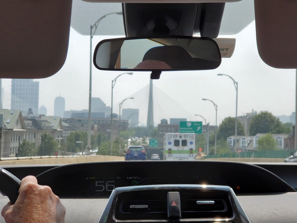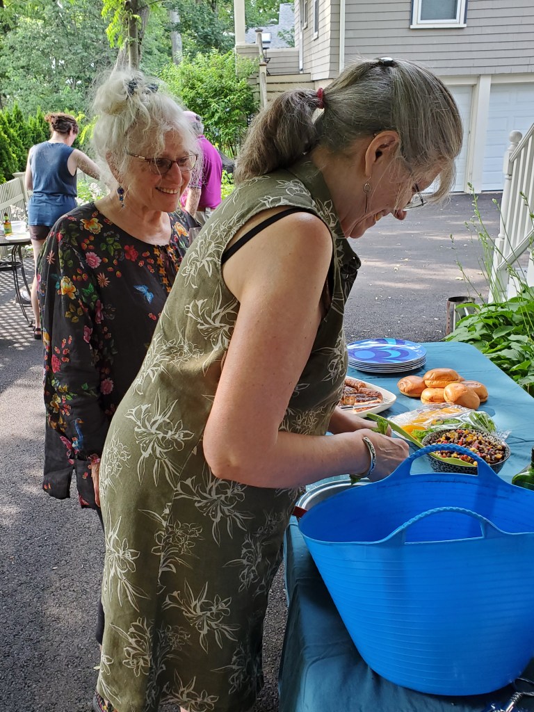 Making the most of time between storms, I’ve quite enjoyed July thus far with three outdoor fêtes within the past 8 days. On Saturday, 1 July, I rode south to Newton, MA with Mara and Peter, relishing the Schadenfreude inspired by the traffic barely creeping north on I-95 in a tailback that stretched all the way to the Whittier Memorial Bridge over the Merrimack at Newburyport. As we approached the Bunker Hill Memorial Bridge, the Boston skyline was obscured by Canadian wood smoke, but that seemed to lift by the time we arrived in Newton.
