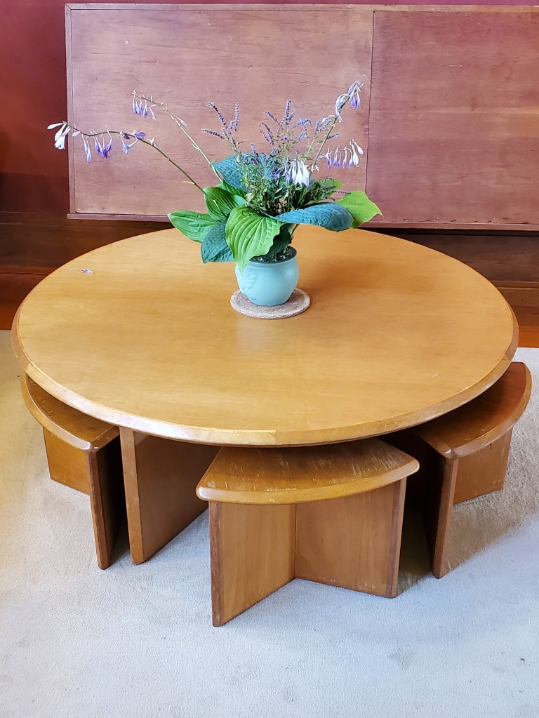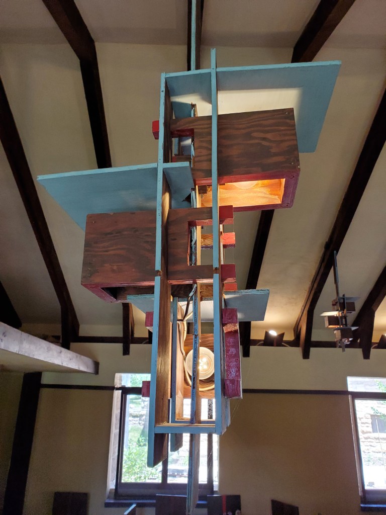 Dining room at Hillside Studio, with lighting fixtures designed by Taliesin apprentices