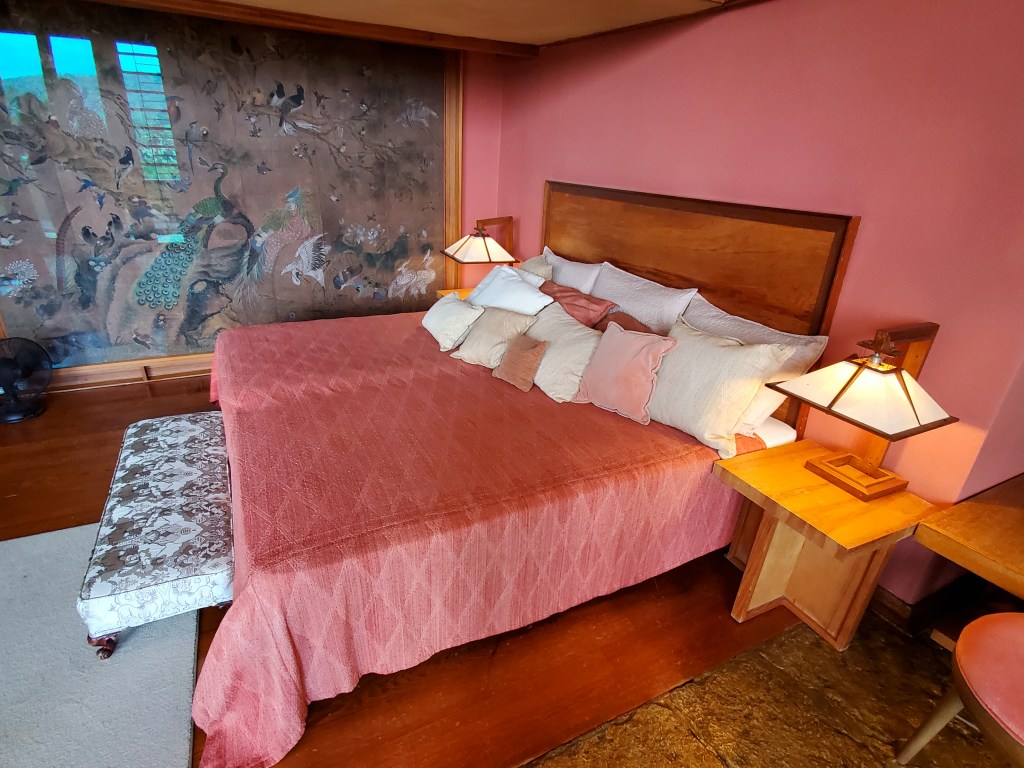 I’d prepared for the tour by reading T. Coraghessan Boyle’s historical novel The Women about the four most important women in FLW’s life, his three wives—Catherine (Kitty) Tobin, Maude Miriam Noel, and Olgivanna Lazovich Milanoff—and his mistress, Mamah Borthwick Cheney, infamously murdered at Taliesin along with her children and four others when servant Julian Carlton set the place on fire in 1914 and dispatched its occupants with an ax as they fled the burning structure.  The rest of my knowledge of FLW came by way of my late husband, architectural historian David Andrew, an authority on FLW’s first employer, the equally renowned Louis “form follows function” Sullivan.  So, this tour was both of great interest to me and somewhat haunted.
