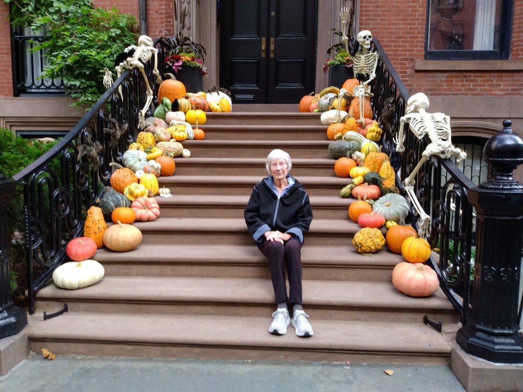 Closer to home and Halloween, there’s my good friend Jennifer, enjoying a moment on a West 10th street stoop in NYC, and helping me recall how much I have always loved Halloween.