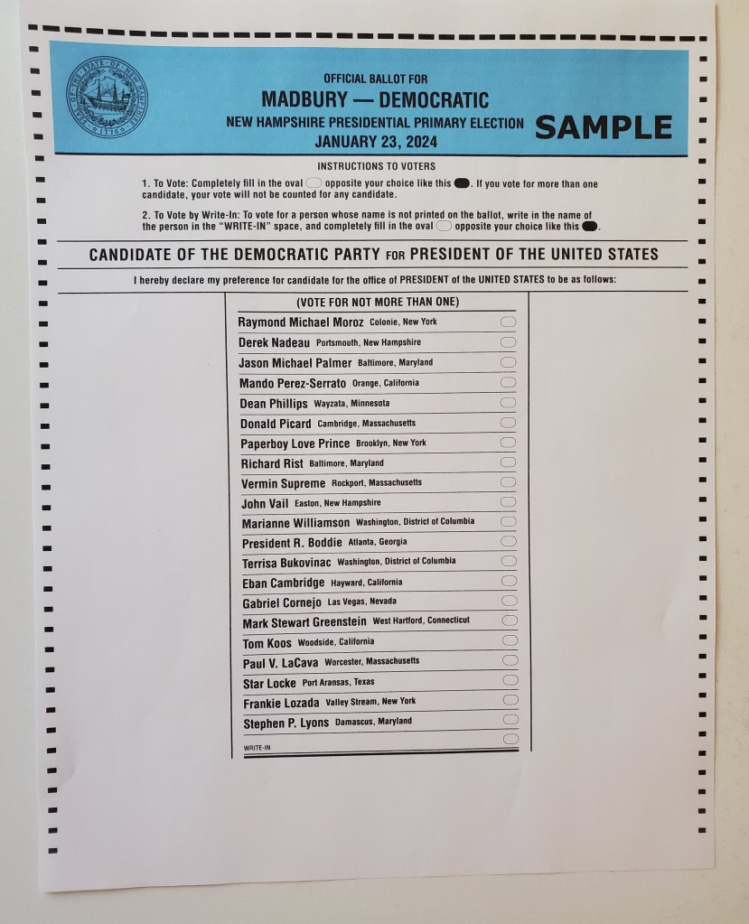 Biden’s not even on the primary ballot in New Hampshire, which I can only think is a political mistake. The Democratic ballot looks like a joke!