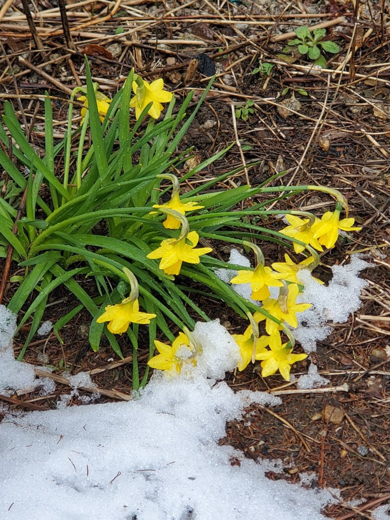 Earlier this Saturday I spent a rare sunny afternoon clearing winter detritus from some of my flower beds, cheered by the smell of the damp earth and the host of doughty daffodils that have so valiantly braved our two recent snow storms. Time flies, and already the two extraordinary events of earlier in the week recede in the rearview mirror. But both are worth reviewing.