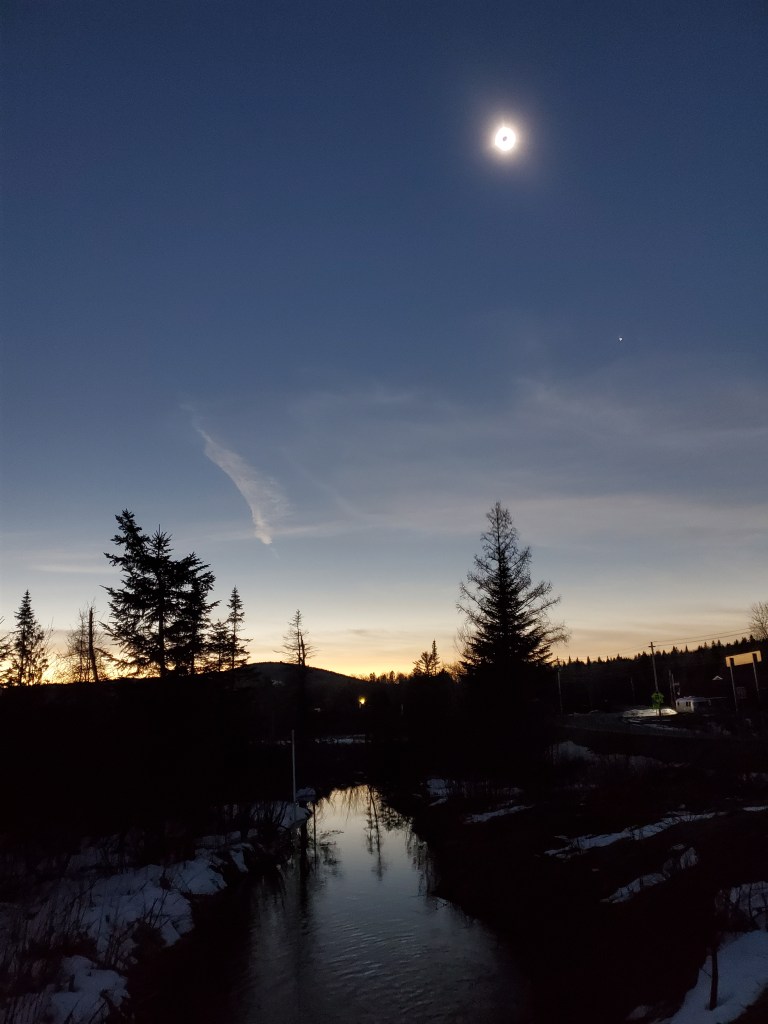 Last Sunday my friend Vicky and I drove north to Averill, Vermont right at the Canadian border to be in the path of the 8 April total eclipse, the first I’ve seen and likely the last I will observe.