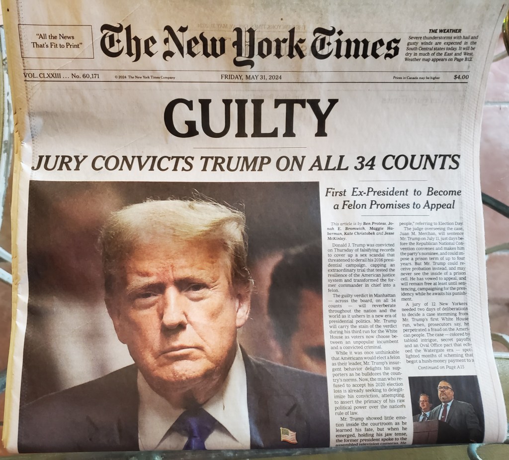 Here on 31 May 2024, the morning after the first felony conviction of a former U.S. president and the fifth anniversary of my husband David’s death, I am thinking not only of the hinge moment that will fill the 24/7 news cycle for days to come, but of what feels like a hinge moment in my own life, even leaving aside the tsunami of political and historical implications for the world’s leading democracy in peril.