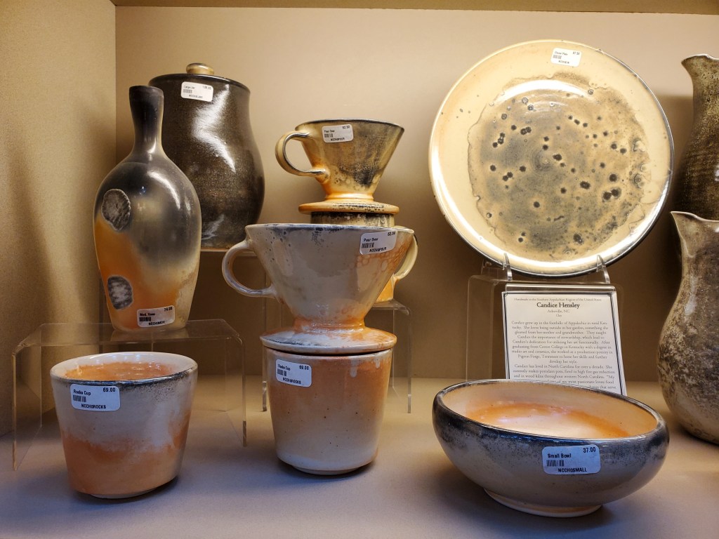 On 15 May, brother-in-law Richard, nephew Daniel, and I loaded our cars and left “My Happy Place” cabin in Whittier, NC, all of us now outfitted with gps for the journey ahead. Richard’s new mastery of that technology eased my concern for them; they got safely to Ocala, and I headed to my old Kentucky home in Danville, where I taught at Centre College from 1984-1995. But first, I made a stop along the Blue Ridge Parkway at the Folk Art Center my potter sister Jane and I had once visited, checking out what her colleagues in the Southern Highland Craft Guild had to show. Some of the pots on display were from Jane’s alma mater in Clyde NC, Haywood Technical College (now Haywood Community College); she’d like that. I thought of how much our Blonde Wind loved her time in the mountains, and bought myself a souvenir pair of earrings to mark the visit, as David always had for me.