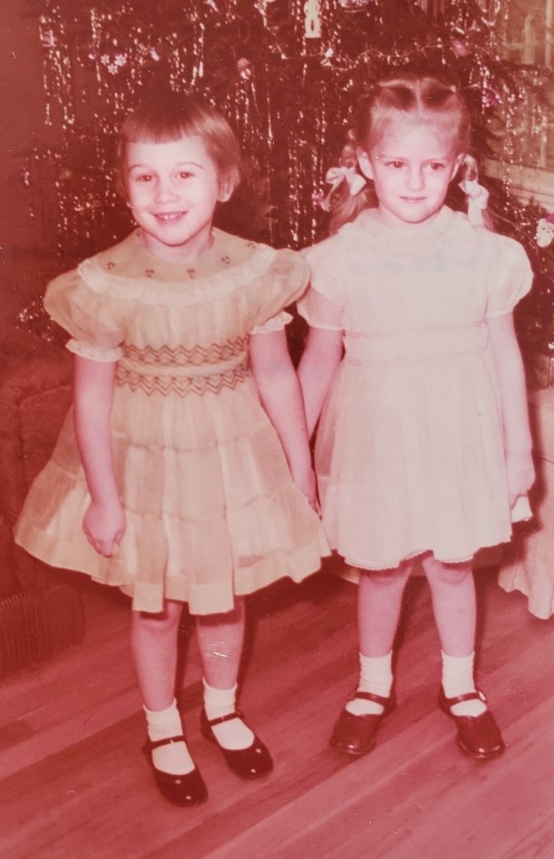 My first memories are from that time: being in my crib, the guppies we had, the time my mother fell down the stairs, my baby doll Mark Burns being hidden in an oatmeal box by a mischievous neighbor boy. My mom Virginia started taking basket weaving lessons from a blind man at the Columbus YWCA, and there met another mom, Janet, with another little girl my age, Sandy. Janet and Virginia became life-long friends, and Sandy became my very first friend. It was she I was now, almost 70 years later, going to visit.