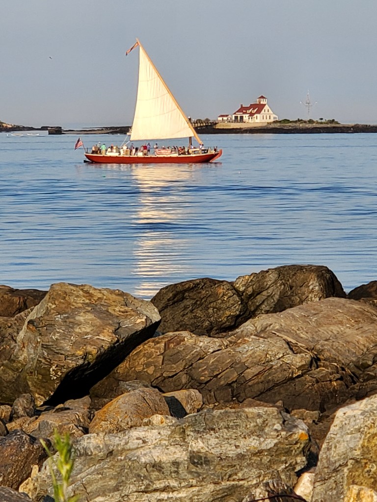 So, over the past weekend, I took a break from all that’s horrible to enjoy all that’s wonderful about summertime in New Hampshire, and record here in my 105th post some of its many delights, beginning with visits three days in a row to the impossibly twee and charming New Castle, first for the Parade of Sails brunch on Friday, 26 July, a delightful affair offered this newest member of the Seacoast Village Project.