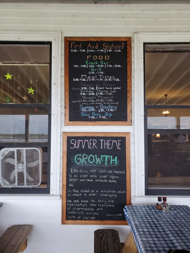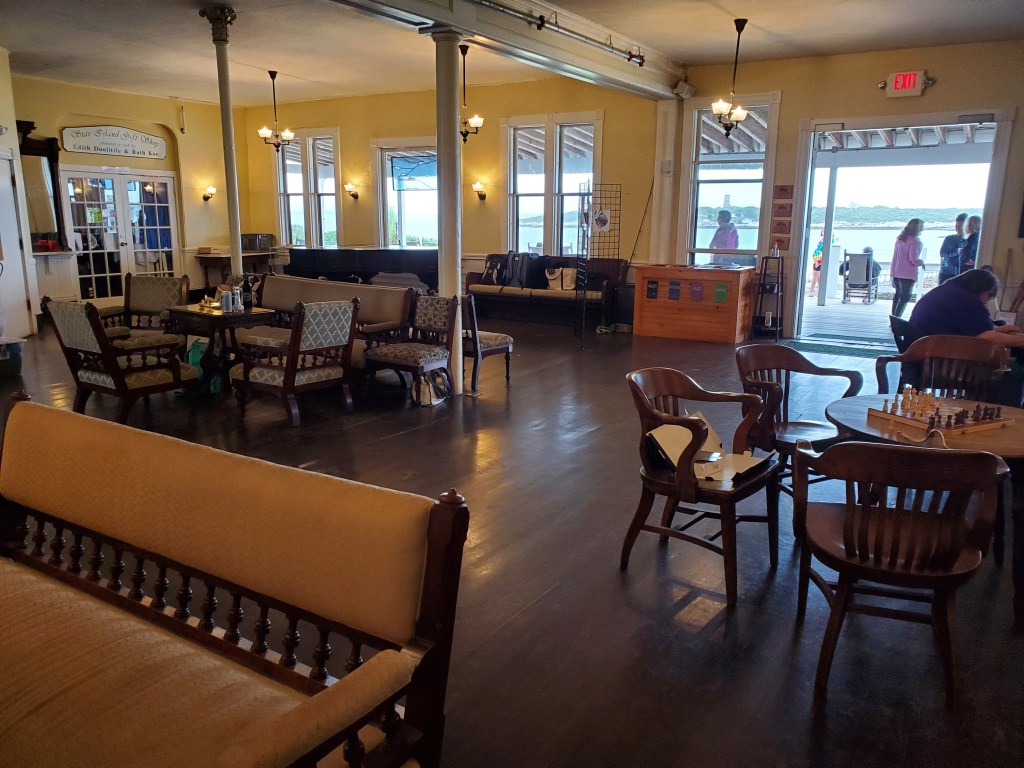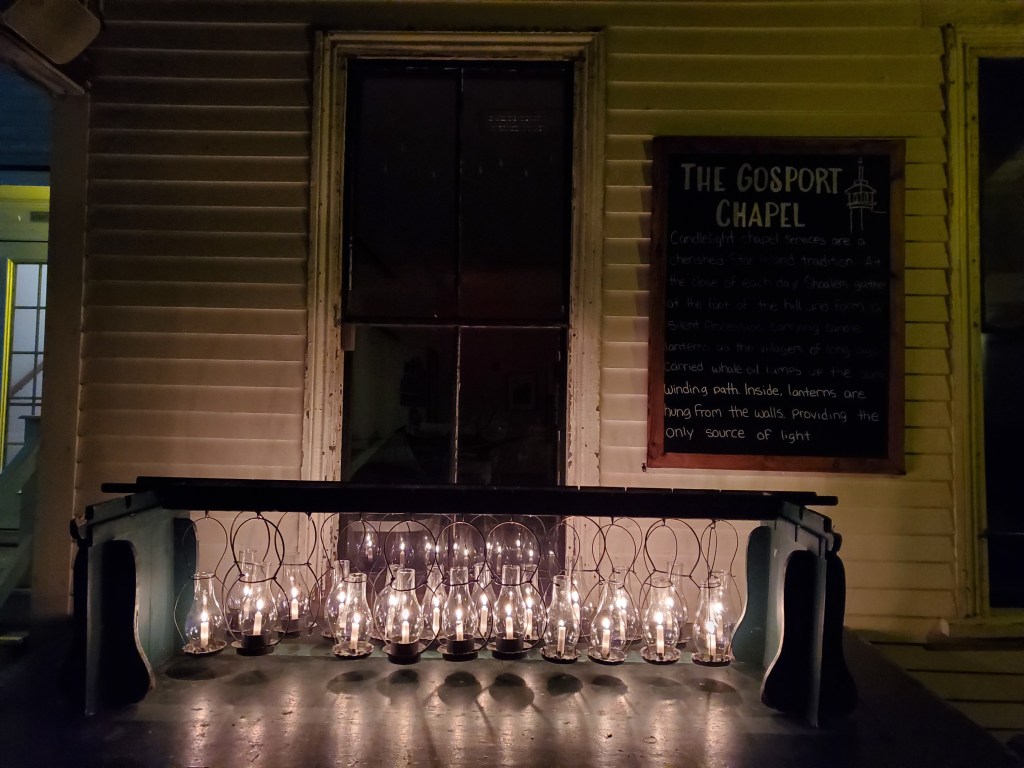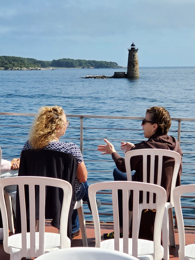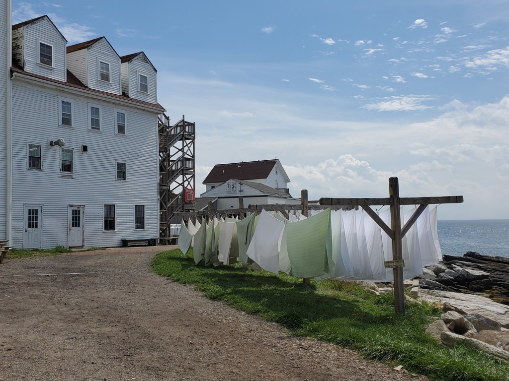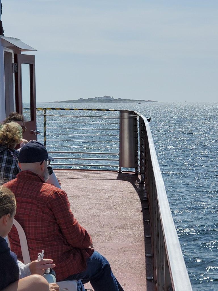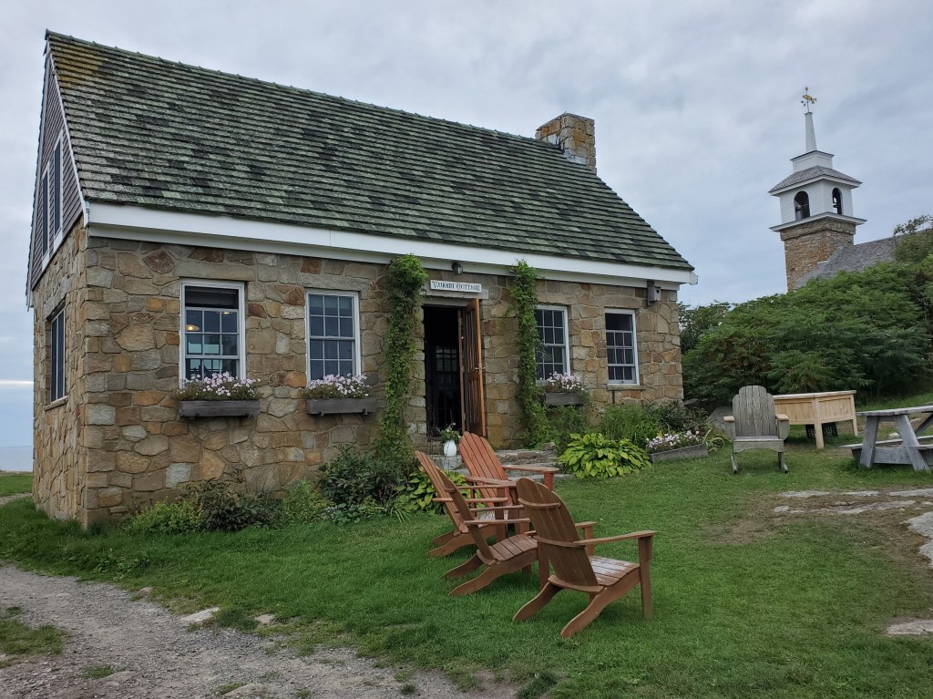 The Thomas Leighton, our ferry to Star Island, at the Portsmouth dockPortsmouth Harbor and the doughty Moran tugs that ply the 4-knot tidal currents of the Piscataqua RiverHeaded out into the Atlantic under the Memorial BridgePassing the symphony of cranes at the Portsmouth Naval ShipyardPortsmouth Harbor Lighthouse at the U S Coastguard Station adjacent to Fort ConstitutionFellow yogis passing the 1872 Whaleback LighthouseApproaching Star IslandArrival, with greetings from the Island Pelicans, staff members known as “Pels”Ascent to my third floor roomEvery passage on these stairs an Andrew WyethWe meet our leaders, Kacy Harnedy (left) and Megan GallagherOceania, haven for the quick and the dead“THE” Adirondack: often occupied, vastly therapeuticThe ParsonageVaughan Cottage Museum and LibraryCairn marking the Perimeter RoadMonument to John Smith, “discoverer” of the Isles c. 1610. He named them Smyth’s Isles, a name that didn’t stick, as fishermen there called them the Shoals. Gulls have since expressed their opinion of Smith’s narcissism.Star Island communicationsThe lobby at Oceania, 1876Sunset view from Room 66, 31 August 2024Oceania’s inviting front porchGhost Tour at the graves of the three Beebe girls, Mitty (7), Millie (4), and Jessie (2), daughters of the Rev. George Beebe, minister to Gosport NH, all dead within weeks of each other in 1863 after Mitty brought diphtheria back to the island from her mainland school.Dinghies in syncRoom 66: “Tis a gift to be simple”Oceania’s Dining RoomDaily LaundryJeunne Homme et La MerSunday sunset, 1 September 2024Candle lanterns for the evening service in Gosport ChapelSunrise from the Brookfield deckL to R, Megan, Trudy, Deb, and LindaAudrey and Kacy in our closing circle, and yoga toesKids at the Marine Lab’s annual critter releaseLast Lunch: curried tofu & chick peas, turmeric bread, and ginger cookieLast look: will we return?Back to the Sea