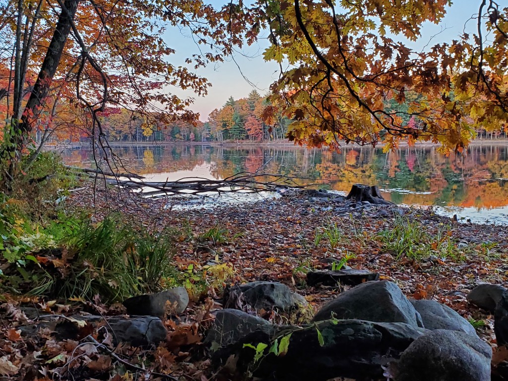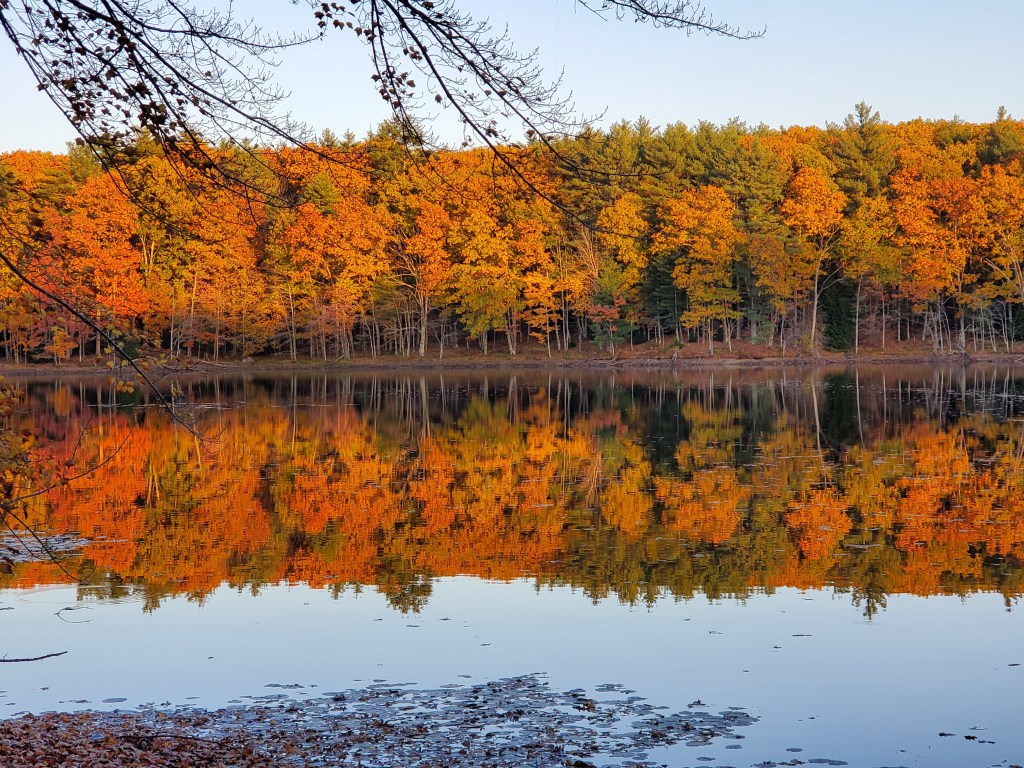 On the other hand, my silver brocade bromeliad is blooming for the first time in five years, and I’ve managed to accomplish almost all the “winter’s coming” chores: houseplants safely back inside, hoses drained and stored, outdoor water supply cut off, deck railing freshly painted with penetrating oil. But I’ve not taken the canoe out since my last birthday, and the Madbury reservoir, for all its gorgeous autumn display, is so low that launching the canoe would mean some perilous wading through boot-sucking muck. The last time I tried that, I had to be pulled out by my larger, stronger friend Gregg.