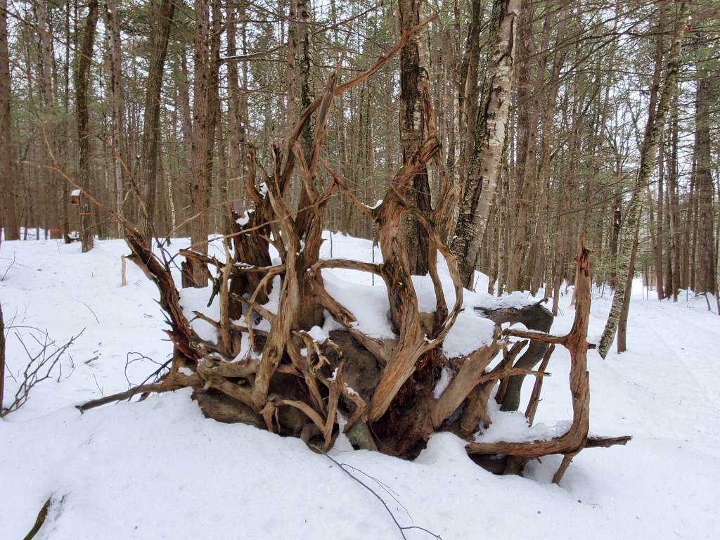From first light early this morning, the wind has gusted around Gnawwood with such ferocity that the change of air pressure rattles interior doors, sporadically interrupting electricity so that oven and microwave protest with random beeps. Winter’s been late arriving this year, but it’s definitely here now. The substantial snowfall is gorgeous and brilliant, but challenging. Twice now, the garage doors have frozen shut; getting out takes some substantial effort and time, and already I am weary of ever-changing footwear requirements. Snowshoeing remains a delight, but attention must be paid, as I learned last week when I stepped on a stick invisible under last week’s deep powder, which, wedged between the outer rim of my right snowshoe and the binding, tripped me so that I dropped the poles that immediately completely disappeared beneath the deep, slippery snow, leaving no trace of their whereabouts. I wasn’t hurt, and I DID finally recover the poles necessary to right myself. But still: a cautionary tale.