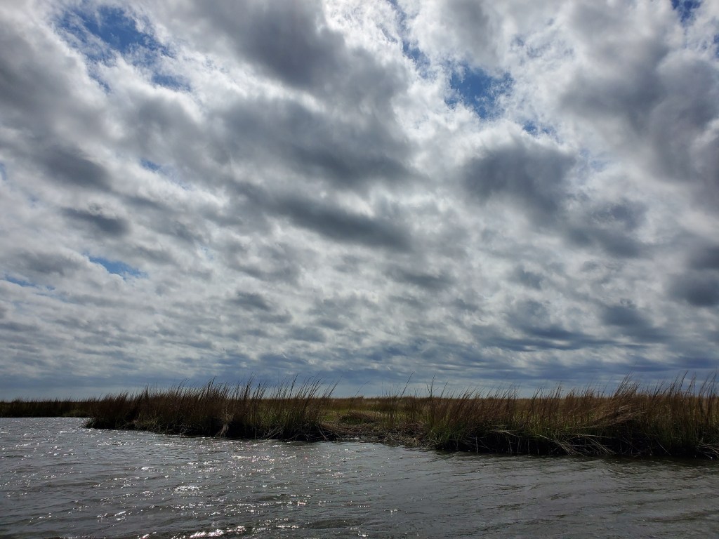 The open Big Sky above the world’s largest contiguous stand of roseau cane (Phragmites australis) was a refreshing vista after the densely forested landscapes of New Hampshire, and speeding through the marsh, observing the ongoing dredging and fill projects designed to absorb ever-rising tides, was fascinating—especially when we counted 10 gators disturbed by our converting gas to noise.