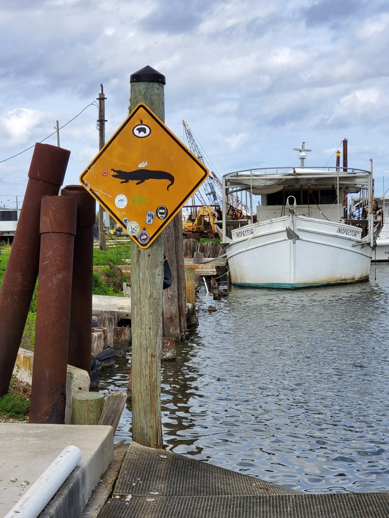 I admired the selection of neck gaiters (aka “Buffs” after the manufacturer) among the marina provisions, and then we boarded for our bayou tour around sites indistinguishable to this novice but well-known to Cpt. Mike (Corner Grocery, Lena Lagoon, Delacroix Island).