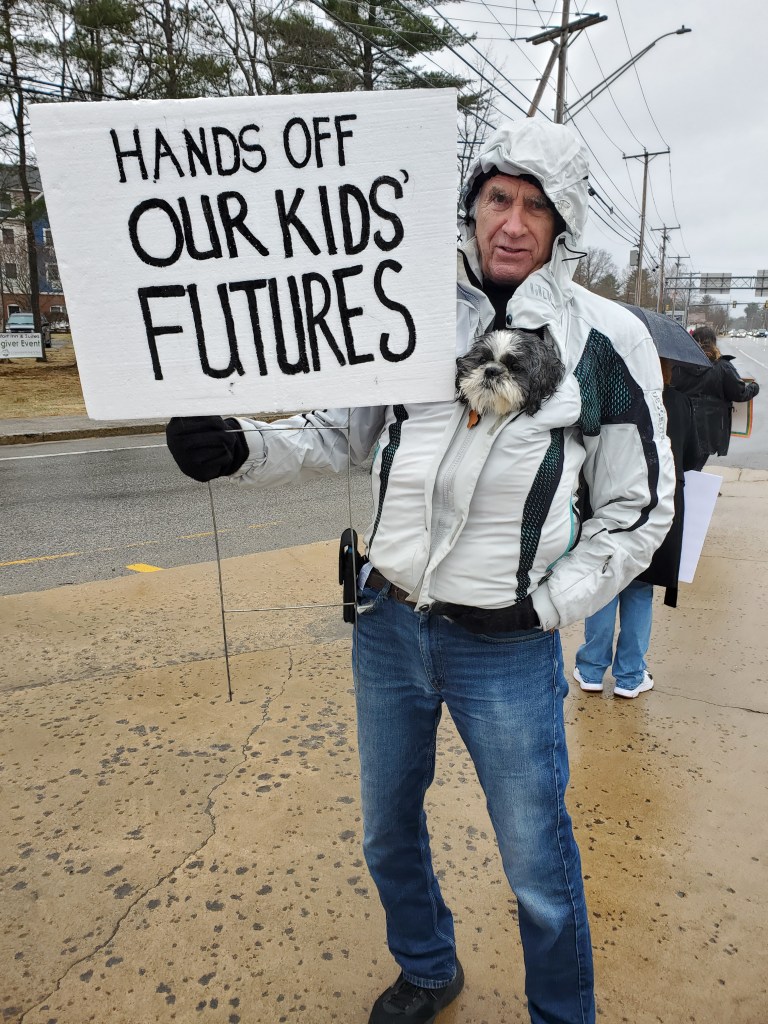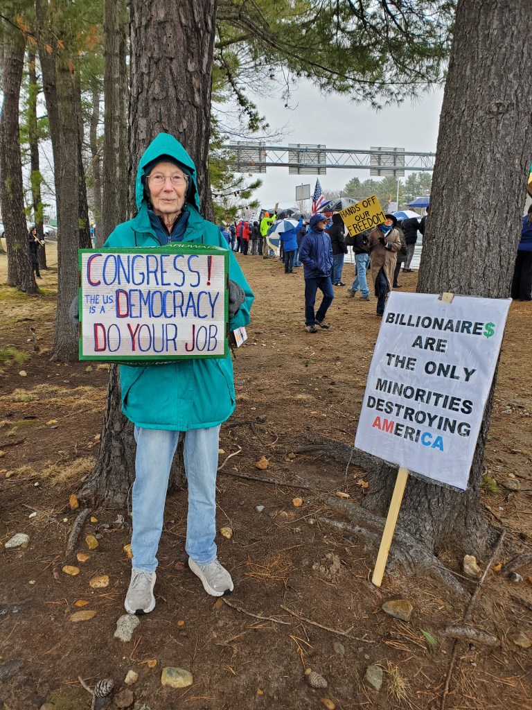 Which brings me to another glimmer I felt last Saturday, standing in a cold rain on the corner of Indian Brook Drive and Central Avenue in Dover, NH, the intersection named “Weeks Crossing” for the once-landmark restaurant that closed there in 1995. The last time I stood at that crossroads was in January 2024, when I waved a “Write-in Biden” sign to inspire voters in the New Hampshire primary, and garnered more middle finger salutes than support. I received a couple of the same last Saturday, but the insults were FAR outnumbered by thumbs-up gestures and supportive honking. Glimmer! Are my fellow citizens finally waking up to the fact that their president is running the country like a company concerned only for the profits of its shareholders? Trump’s recent backing off of absurd tariff policies may have temporarily offered the market some relief (and allowed insider trading profits to his cronies), but the economic truth remains: prices that are quick to go up are slow to come down.