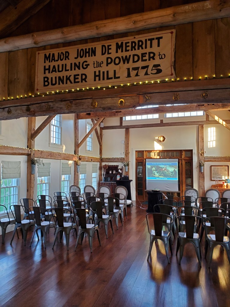 Last Wednesday night in Powder Major’s reconstructed barn, NH Historical Society program developer and educator Mary Adams gave an informative and entertaining “Rebels and Redcoats” presentation, an account of all the credit due the New Hampshire rebels who first began the Revolutionary War. The handsome venue, now a destination for weddings and events, is just down the road from me on Cherry Lane, the home of the De Merritt family for seven generations, and the Goss family, the current owners, for four. Judging from Ms. Adams’s presentation, NH Yankees have been not only brave but stubborn, irascible, and parsimonious right from their colonial beginnings. Live free or die. We could use a glimmer of that spirit now.