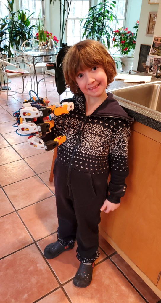 Local delights also counter the prevailing angst, among them my young neighbor Leo first April Fooling me, and then returning to show me how his birthday present, a robotic hand, works.