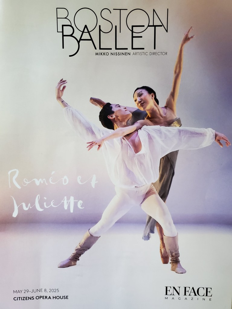 Last Sunday, I was moved to witness dedication of another sort, the dedication of artists who’ve devoted their lives to making their audience understand, collectively and powerfully, what it is to be human. Boston Ballet’s production of Jean-Christophe Maillot’s Roméo et Juliette, staged by Noelani Pantastico, Bruno Roque, and Taisha Barton-Rowledge and danced to Prokofiev’s soaring score under conductor Mischa Santora’s direction, is heartbreakingly gorgeous, the narrative and scenic design pared down to make even more devastating that tale’s essential tragedy: humanity’s capacity for senseless hatred destroying its future in the form of two charming, brave, exquisitely beautiful young lovers. Maillot’s ballet tells Shakespeare’s story from Friar Laurence’s perspective, a cleric clearly tormented by Verona’s division, desperately seizing what he thinks may be a solution, and despairing when destiny intervenes. By some strange alchemy, the collective dedication and talent of all those artists—dancers, choreographers, designers, musicians—transformed tragedy into beauty and solace—even on the sixth anniversary of my beloved husband’s departure. Perhaps Keats’s Grecian urn is right: beauty is truth, truth beauty. The ballet’s truth seems to have set me free.