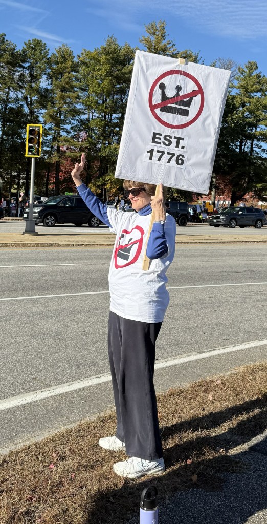 Last night I watched Rachel Maddow’s extended coverage of last weekend’s No Kings rallies, seven million Americans protesting across all 50 states in multiple venues, cities large and small. The Weeks Crossing rally in Dover, New Hampshire (my 6th protest of the Felon-in-Chief) was the largest of the those I’ve attended, coupled with the least number of middle finger salutes from passersby. Progress! As Maddow opined: think how many more would have protested had the Mango Man not waited till after the demonstrations to desecrate and demolish the East Wing of the White House, the in-your-face epitome of his contempt for the People’s House, Democracy, and the Constitution. “I can do what I want,” he crows, which includes broadcasting his puerile, scatological AI-generated video of King Don dumping excrement on the peacefully protesting citizens he swore, hand on bible, to serve. Is disgust with the Notorious P.I.G. gaining momentum? I think so. As Martha Stewart would say, that’s a good thing.