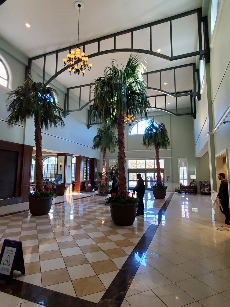The Embassy Suites’ imposing lobby in downtown Savannah