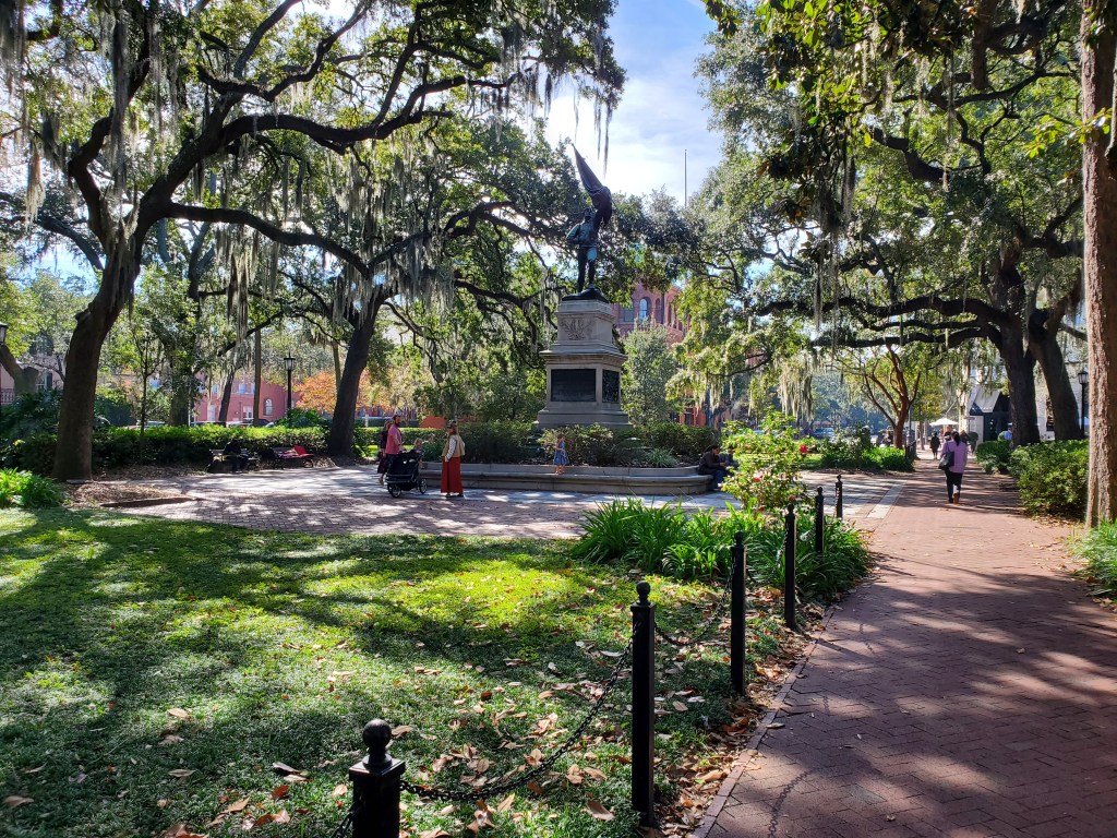Lovely Madison Square, one of Savannah’s 22 squares, this one memorializing Sgt. William Jasper, who saved his regiment’s flag though mortally wounded in the Revolutionary War’s Siege of Savannah, 1779