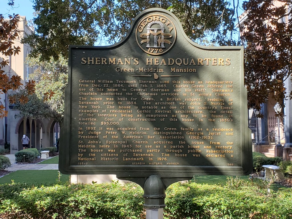 The Green-Meldrim Mansion by architect John S. Norris (1850), and Sherman’s Savannah Headquarters. Did Southern Hospitality save Savannah and this Gothic Revival treasure from Atlanta’s fate? Perhaps.