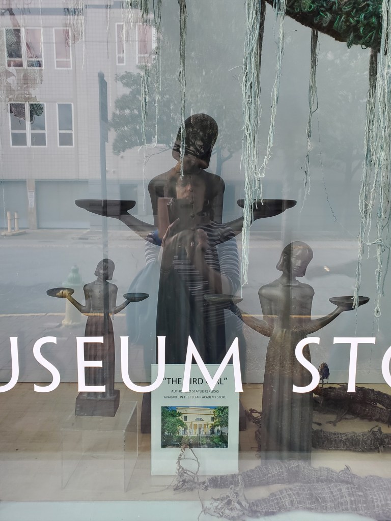 Steven let us know that the Bird Girl once among the cemetery statuary had been so threatened by the fame attending its appearance in Midnight in the Garden of Good and Evil that she’s now housed in the Telfair Academy for safekeeping—with replicas available for sale in the gift shop.