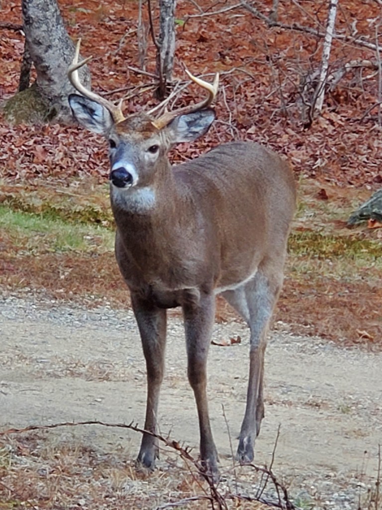 But Madbury also has its charms—and charming visitors, too.  This young fellow appeared just outside my kitchen window the day after Thanksgiving, and we locked eyes for so long I wondered at a possible visitation.  Well, snow coming tomorrow.  Time to settle in.  Home sweet home.