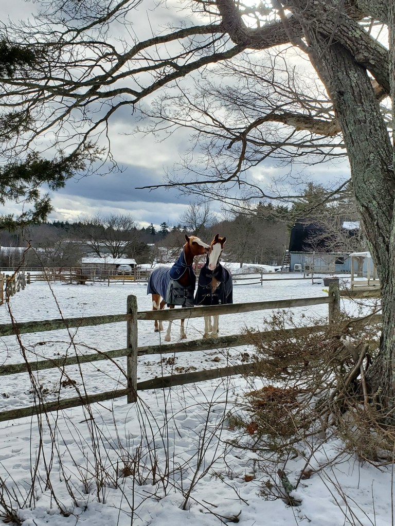 As we head into mid-January, I’m finding myself uncomfortably empathizing with our volatile weather, alternating heavy rain warm enough to melt much of what had been a lovely (and brightening) snow cover with dropping temperatures that freeze my sloping backwards question mark of a driveway into a contorted luge course, making me even more chary than usual of a fall. In our crippled democracy, the horror hits just keep on coming, the latest the Minneapolis murder of Renee Good. My friend Carol was part of the protest in Dover yesterday, a photo of her and her sign (“COURAGE IS CONTAGIOUS! STAND UP NOW OR BOW DOWN LATER”) made USA Today. I, on the other hand, worrying about ice on the road as well as trigger happy ICE agents, went to Portsmouth not to protest but to see Ethan Hawke’s remarkable performance in Blue Moon. Wonderful script, acting, direction; devastatingly heartbreaking. Perhaps not the best choice to experience on a dark, cold day as I struggle with death cleaning resolutions and the ever more noticeable drag of aging.