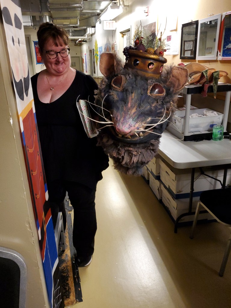 Heather displays the Mouse King’s head Finally, we said our thanks and goodbyes, and headed out of the theatre, shedding magic as we walked through the now-dark Boston streets searching out the pedestrian entrance to the parking garage.