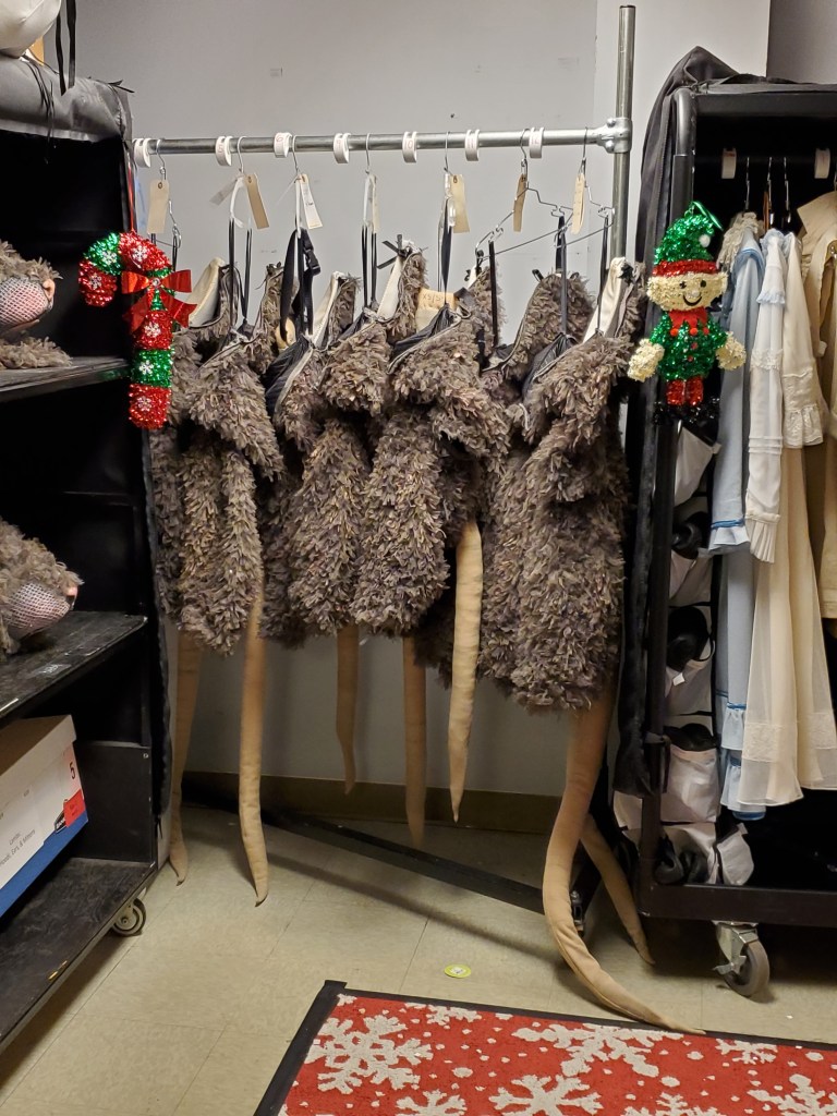 Mission accomplished: the Nutcracker Prince receives Leo’s gift Elizabeth led us on through the costume shop: mice heads, soldier heads, and glittery tutus. Wardrobe manager Heather even retrieved the Mouse King Head for our appreciation (honestly, its realism could be the stuff of nightmares).