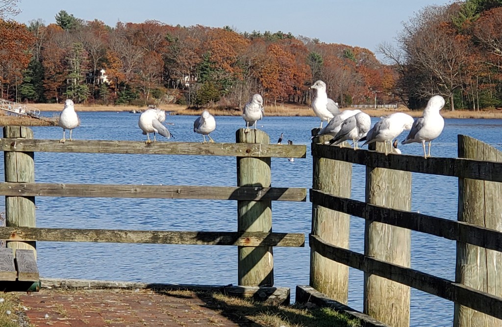 Only one gull in nine pays attention at the Oyster River Landing, Durham NH -