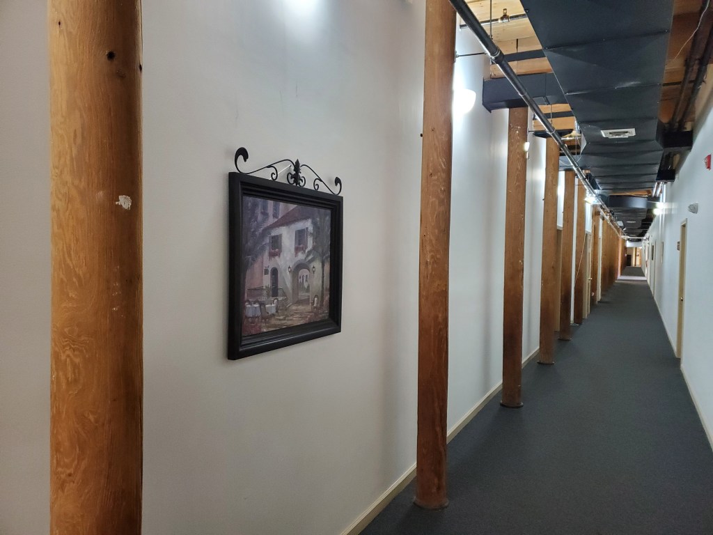 Salmon Falls Mill corridor: sweatshop repurposed as studios So we beat on, boats against the river flowing. Our country has taken a very cold plunge into a future that does not bode well. Slippery, murky, mucky slope? Again, time will tell. We pull up our socks and hope that, in the concluding words of Drukman’s captivating character Pru Payne, what we do to carry on will be “good enough.”